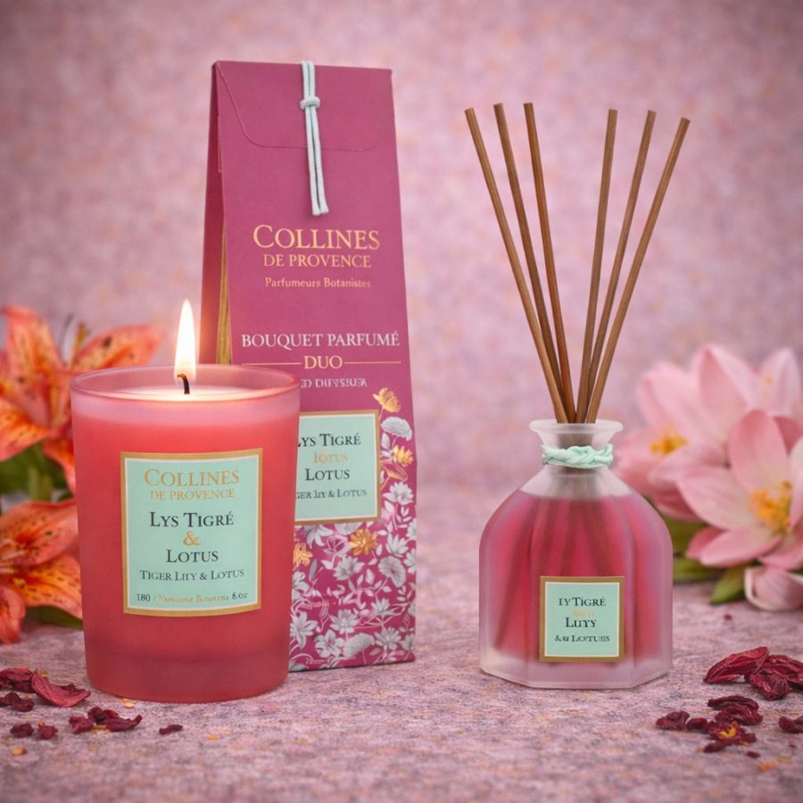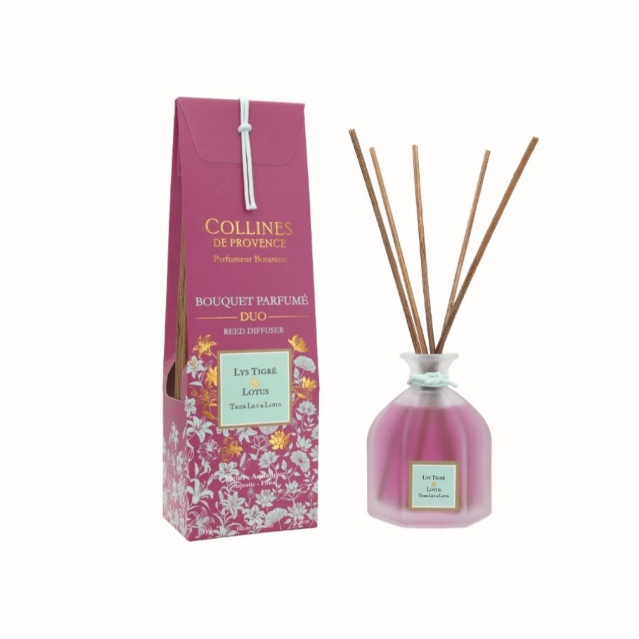 Le Bouquet Parfumé Lys Tigré et Lotus de Collines de Provence est une création olfactive raffinée pensée pour transformer l’atmosphère de votre maison 🏡 en un lieu chaleureux et serein. Fabriqué à la main dans les ateliers de la marque en Haute-Provence, ce diffuseur parfumé à tiges allie savoir-faire artisanal français et parfum inspiré de la nature.