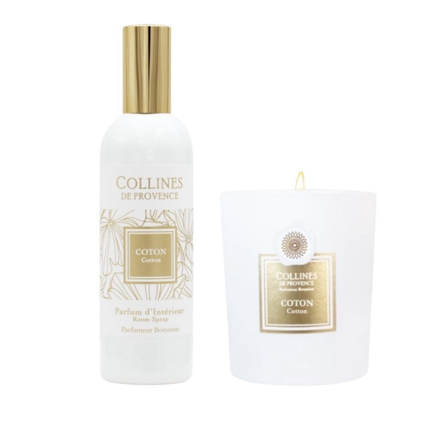 Coffret parfumé coton : bougie et parfum d’intérieur, une ambiance douce, élégante et apaisante, idéale pour offrir ou se faire plaisir.