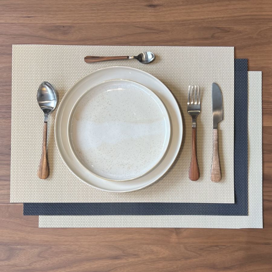 Découvrez nos sets de table en PVC recyclé disponible dans trois coloris.